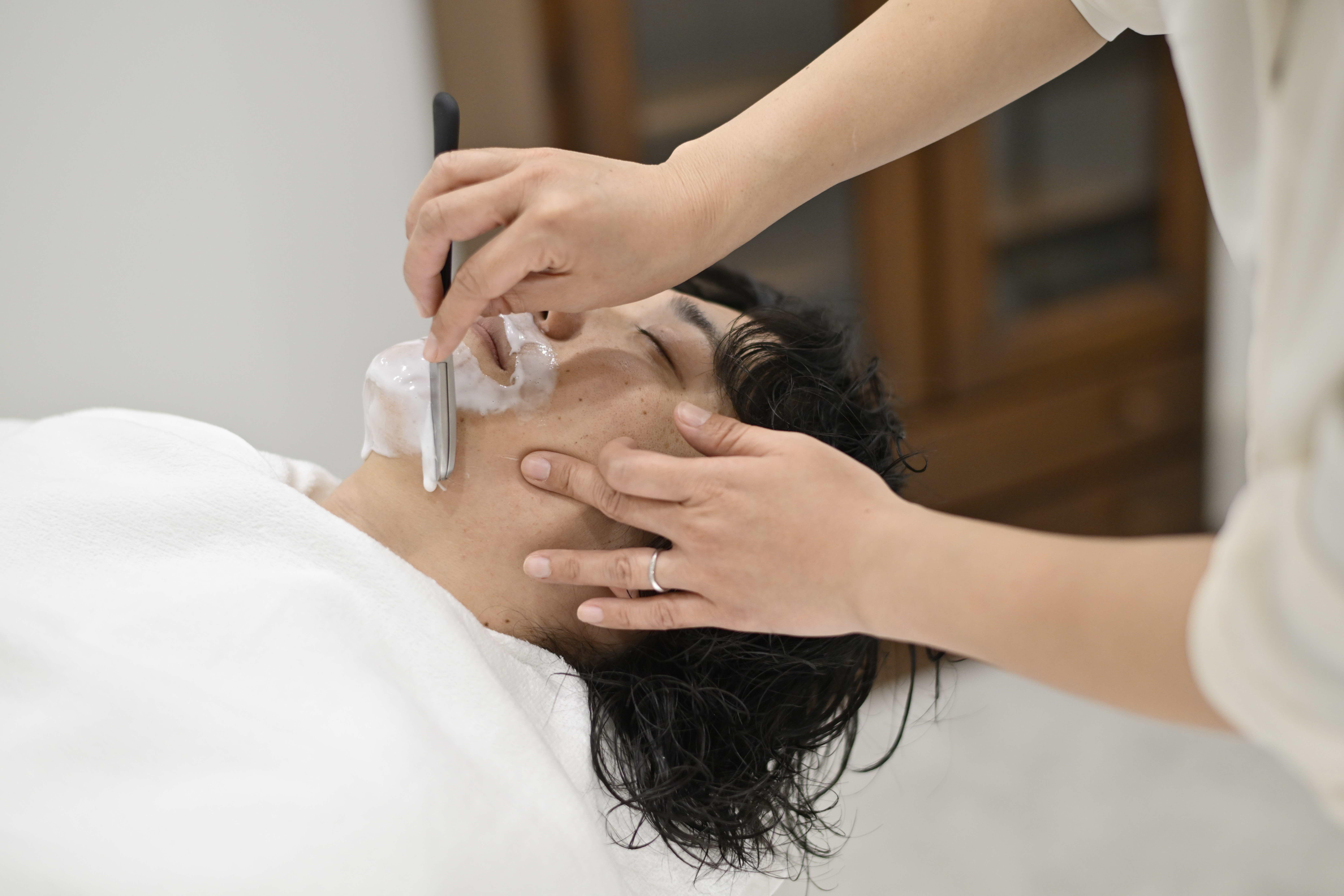 シャンプー、ヘッドスパ得意です。 レディースシェーブはフェイシャルマッサージを取り入れ癒しの空間を!